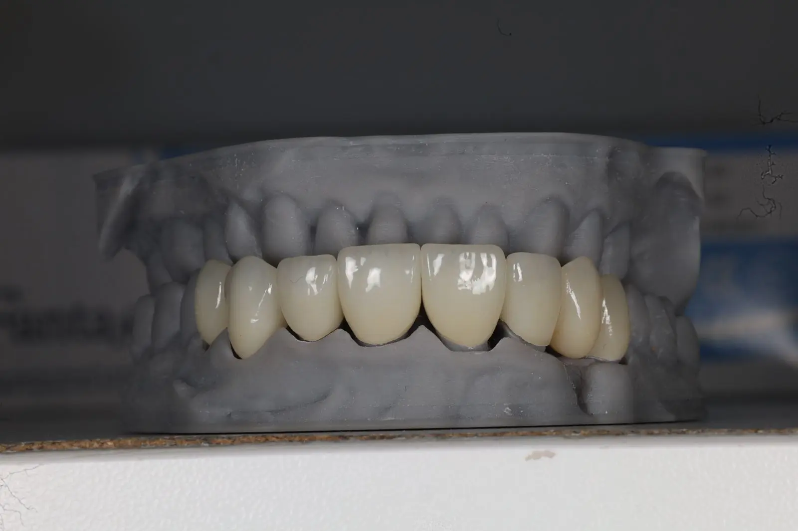 Tiempo de fabricación | Más rápida y predecible, gracias a nuestro sistema CAD/CAM de alta precisión. | Toma más tiempo debido al proceso artesanal de estratificación de cerámica. |